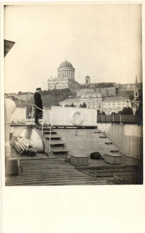 Beschreibung: Esztergom, "JOSEPH CARL" a DDSG utasszállító lapátkerekes gőzhajója az esztergomi Bazilikánál, kapitány a fedélzeten. photo