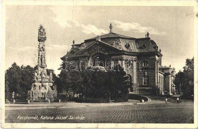 Kecskemét, Katona József színház, Szentháromság szobor (fa) https://www.darabanth.com/de/364-Fernauktion/364.0/Ansichtskarten/Ungarn~1000006/Kecskemet-Katona-Jozsef-szinhaz-Szentharomsag-szobor-fa~II2108660