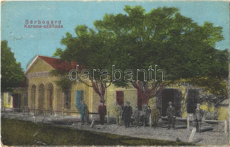 Beschreibung: Sárbogárd, Korona szálloda, kávéház és étterem. 4544. Vasúti levelezőlapárusítás (fl)