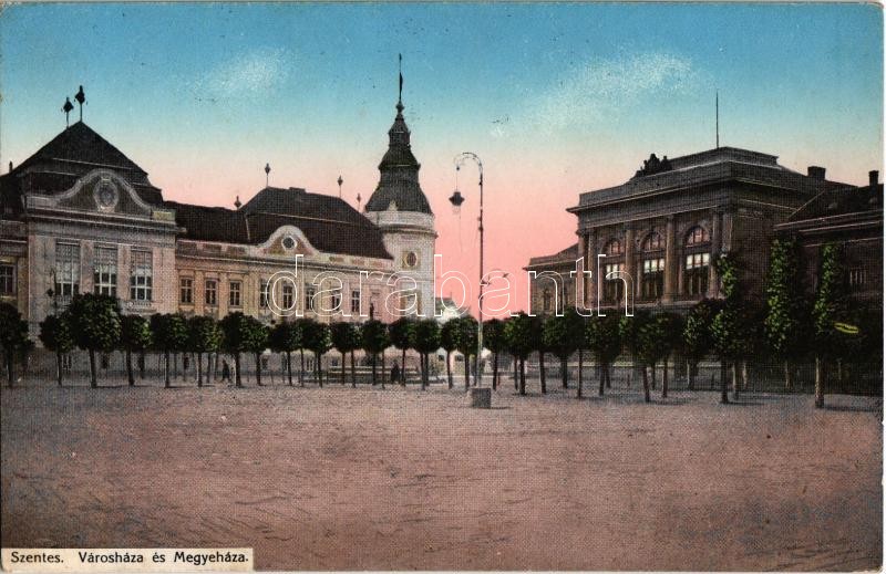 Szentes, Városháza és Megyeháza. Kiadja Eisler Lajos https://www.darabanth.com/de/364-Fernauktion/364.0/Ansichtskarten/Ungarn~1000006/Szentes-Varoshaza-es-Megyehaza-Kiadja-Eisler-Lajos~II1955186