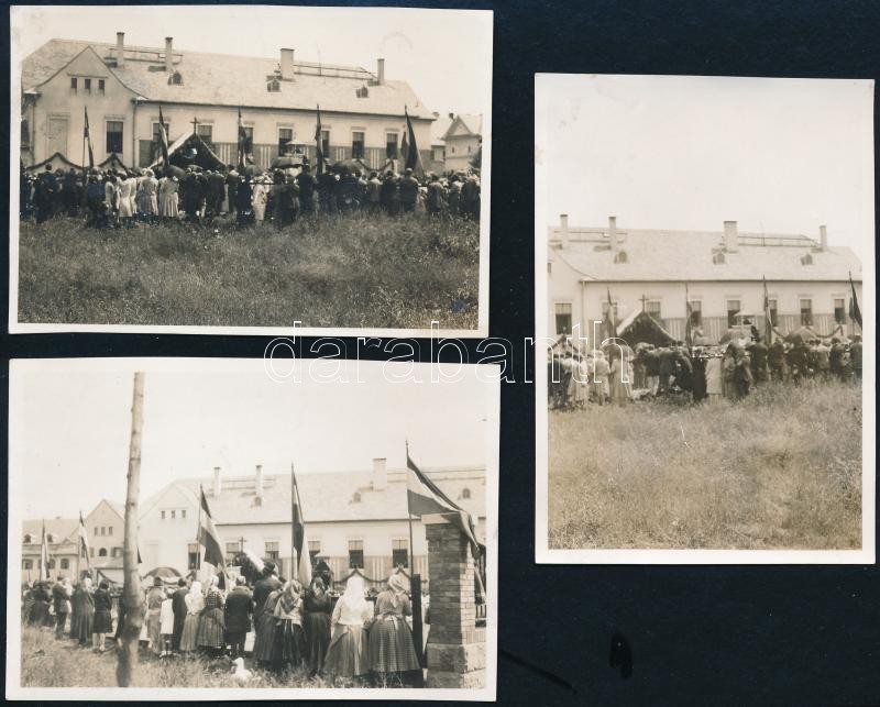 Beschreibung: 1930 Vác, zászlószentelés, 3 db fotó, 8,5×6 cm