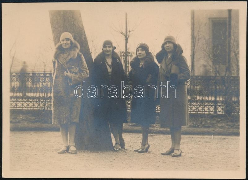 1930. március 6. Kinszki Imre (1901-1945) budapesti fotóművész hagyatékából jelzés nélküli, de a szerző által datált, vintage fotó (Barátnők, ez a szerző által számozott 449. felvétele), 6,2x8,5 cm