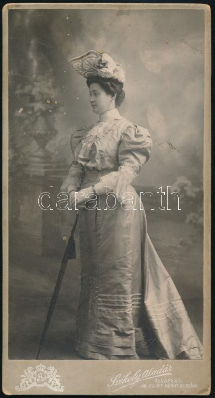 Beschreibung: cca 1905 Budapest, Székely Aladár műtermében - Weisz Mihálynéról - készült, keményhátú, vintage fotó, feliratozva, 20,5x11 cm