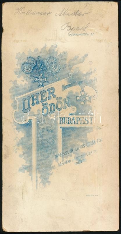 Beschreibung: cca 1910 Budapest, Uher Ödön műtermében - Halbauer Aladárról - készült, keményhátú, vintage fotó, feliratozva, 20,5x10,5 cm
