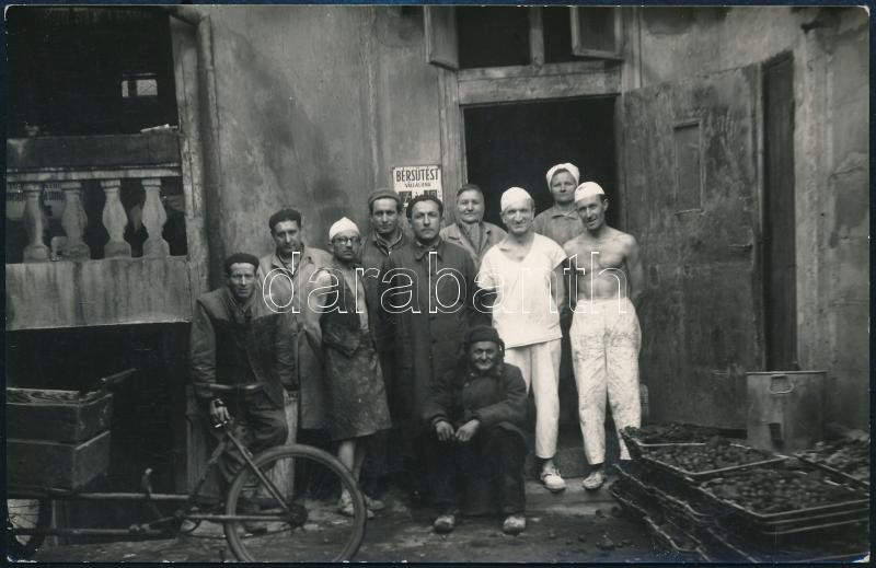 cca 1930 Pékség és pékek fotója 9x14 cm https://www.darabanth.com/de/364-Fernauktion/364.0/Fotografie/Foto~500020/cca-1930-Pekseg-es-pekek-fotoja-9x14-cm~II2105652