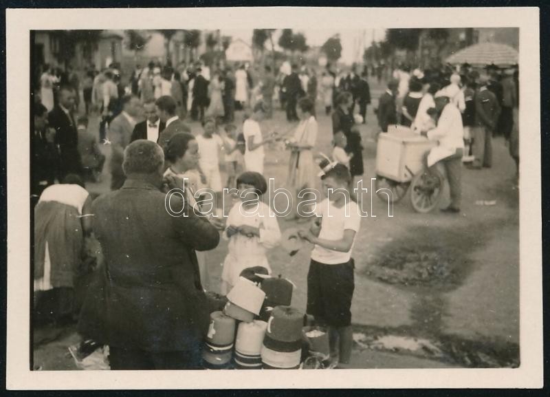 Beschreibung: cca 1932 Kinszki Imre (1901-1945) budapesti fotóművész hagyatékából jelzés nélküli vintage fotó (Vásári kavalkád), 4,3x6 cm