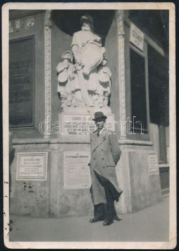 cca 1940 Budapest, Teréz körút és Szondi utca sarka, ritka fotó a Szondi 2 apródja szoborról, ami a II. vh.-ban megsemmisült, és 1939-ben készült el, fotó, sarkán törésnyom, 8×6 cm