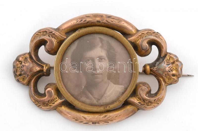 Aranyozott ezüst(Ag) fényképes bross, jelzés nélkül, fém tűvel, 5×3 cm... https://www.darabanth.com/de/364-Fernauktion/364.0/Juwelen/Juwelen~500032/Aranyozott-ezustAg-fenykepes-bross-jelzes-nelkul-fem-tuvel-5C3973-cm-brutto-8-6-g~II2103531