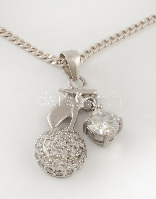 Beschreibung: Ezüst(Ag) lapos pancer nyaklánc, köves függővel, jelzett, h: 42,5 cm, 1,3×2,5 cm, bruttó: 5,6 g