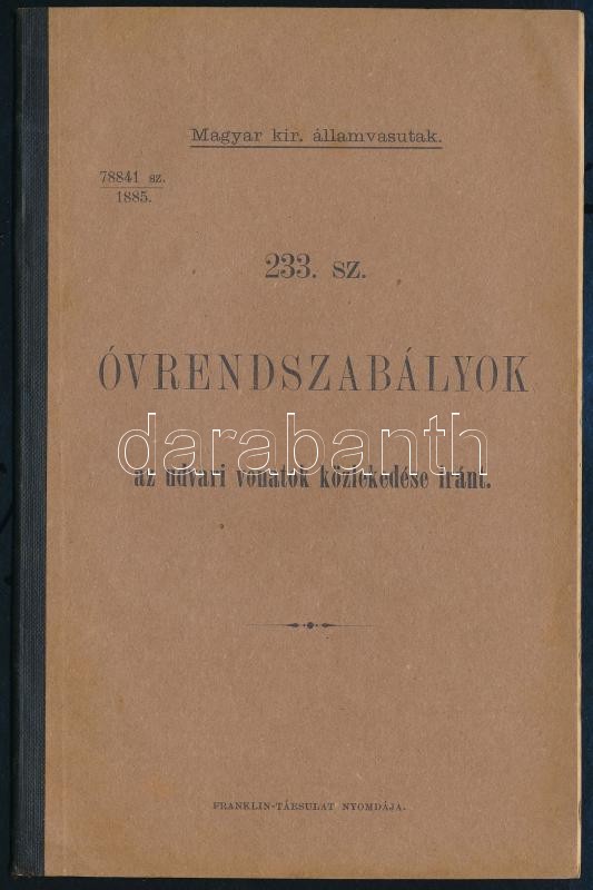 1885 MÁV 233. sz. óvrendszabályok az udvari vonatok közlekedése iránt.... https://www.darabanth.com/de/364-Fernauktion/364.0/Kunst-Dokumente-andere-Sammelgebiete/Drucksachen~500029/1885-MAV-233-sz-ovrendszabalyok-az-udvari-vonatok-kozlekedese-irant-Bp-1885-Franklin-14-p~II2104728