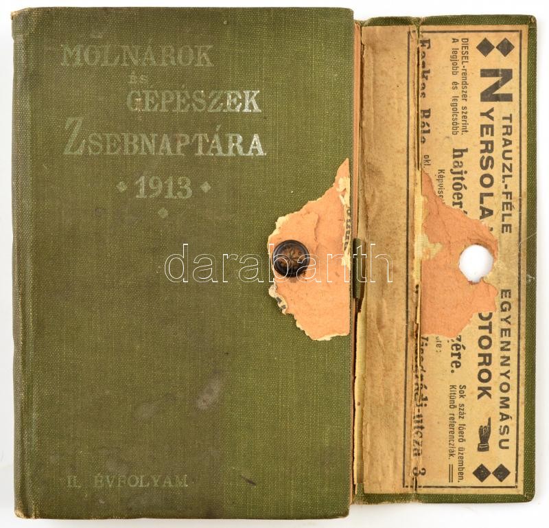 Beschreibung: 1913 Molnárok, gépészek zsebnaptára kissé sérült egészvászon kötésben