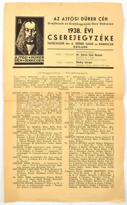 1938 Az Ajtósi Dűrer Céh - Grafikusok és Grafikagyűjtők Köre Debrecen ... https://www.darabanth.com/de/364-Fernauktion/364.0/Kunst-Dokumente-andere-Sammelgebiete/Drucksachen~500029/1938-Az-Ajtosi-Durer-Ceh-Grafikusok-es-Grafikagyujtok-Kore-Debrecen-cserejegyzeke-4-p~II2106213