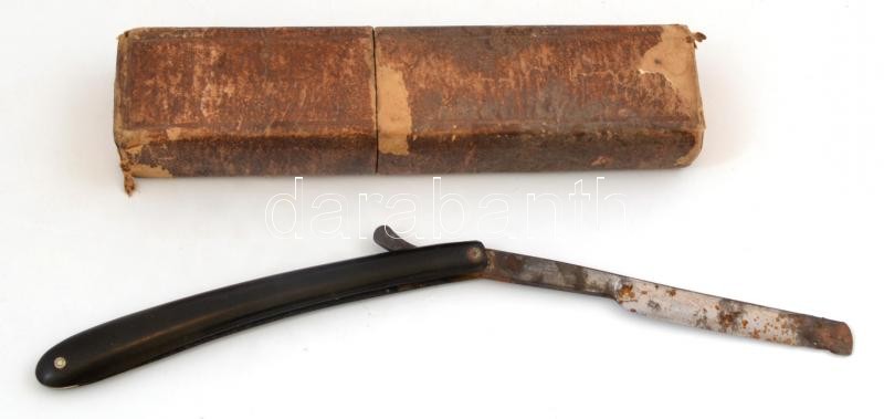 Régi Figaro borotva, eredeti dobozában, rozsdás, h: 23 cm https://www.darabanth.com/de/364-Fernauktion/364.0/Kunst-Dokumente-andere-Sammelgebiete/Flohmarkt~500011/Regi-Figaro-borotva-eredeti-dobozaban-rozsdas-h-23-cm~II2107666