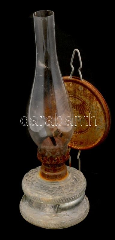 Beschreibung: Régi üveg petróleumlámpa, rozsdás, tisztításra szorul, m: 36 cm