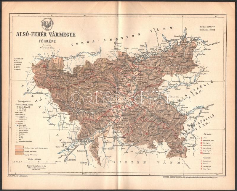 1893 Alsó-Fehér vármegye térképe, rajzolta: Gönczy Pál, kiadja: Posner... https://www.darabanth.com/de/364-Fernauktion/364.0/Kunst-Dokumente-andere-Sammelgebiete/Landkarten~500028/1893-Also-Feher-varmegye-terkepe-rajzolta-Gonczy-Pal-kiadja-Posner-Karoly-Lajos-24C39730-~II2107861