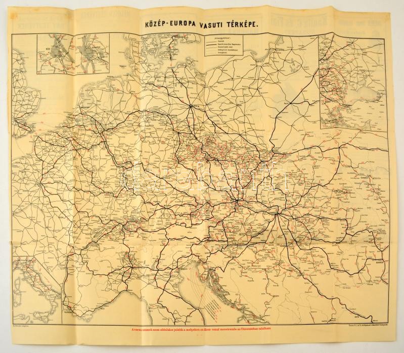cca 1910 Railroad map of Central Europe, with adds on the back, 47x58 cm.