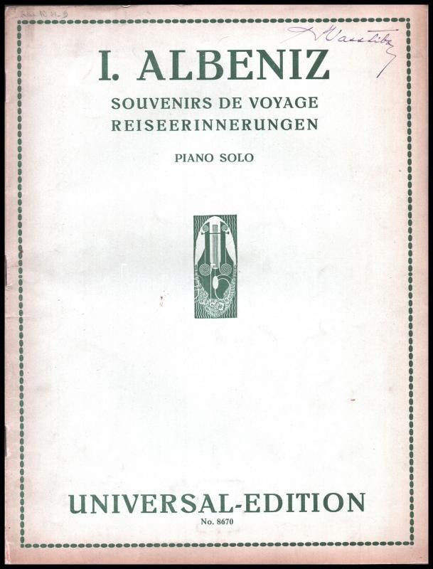 I. Albeniz: Reiseerinnerungen, piano solo. Kiadói papírkötés, jó állap... https://www.darabanth.com/de/364-Fernauktion/364.0/Kunst-Dokumente-andere-Sammelgebiete/Musik-Noten~500031/I-Albeniz-Reiseerinnerungen-piano-solo-Kiadoi-papirkotes-jo-allapotban~II2105112