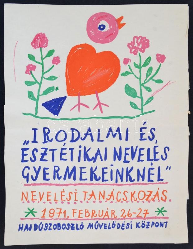 1971 "Irodalmi és esztétikai nevelés gyermekeinknél", nevelési tanácsk... https://www.darabanth.com/de/364-Fernauktion/364.0/Kunst-Dokumente-andere-Sammelgebiete/Plakat~500030/1971-Irodalmi-es-esztetikai-neveles-gyermekeinknel-nevelesi-tanacskozas-Hajduszoboszlo-~II2019647