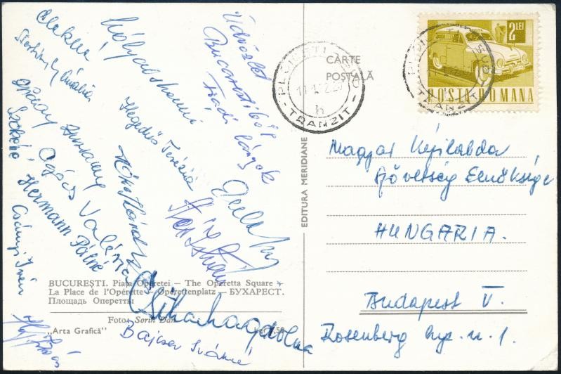 Beschreibung: FTC női kézilabda sportolóinak aláírása Bukarestből hazaküldött képeslapon