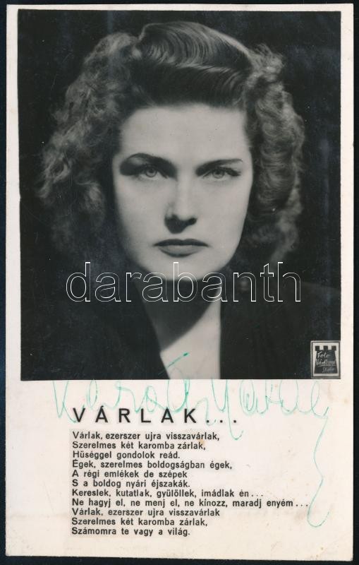 Beschreibung: Karády Katalin (1910-1990) színésznő aláírása az őt ábrázoló fotón
