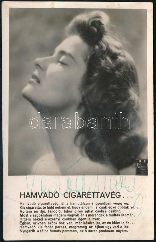 Beschreibung: Karády Katalin (1910-1990) színésznő aláírása az őt ábrázoló fotón