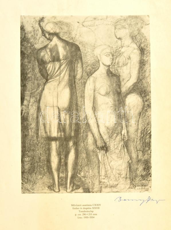 Beschreibung: cca 1960 Ofszet tanulmánylap, Barcsay Jenő aláírásával, 38×27 cm