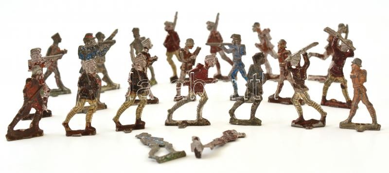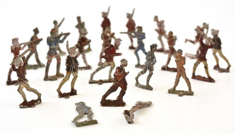 Beschreibung: 25 db francia ólomkatona figura, vegyes állapotban m: cca 3 cm