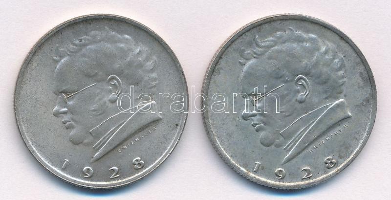 Austria 1928. 2 Schilling Ag "Centennial of the Death of Schubert" (2x) C:AU,XF kis patina Krause KM#2843