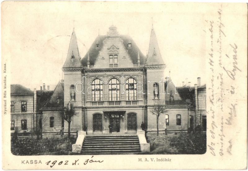 1902 Kassa, Kosice; MÁV (Magyar Államvasutak) indóház, vasútállomás. K... https://www.darabanth.com/de/365-Fernauktion/365.0/Ansichtskarten/Slowakei~1500006/1902-Kassa-Kosice-MAV-Magyar-Allamvasutak-indohaz-vasutallomas-Kiadja-Nyulaszi-Bela-~II1904915