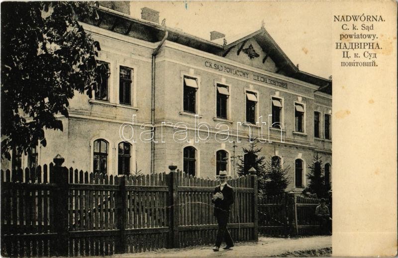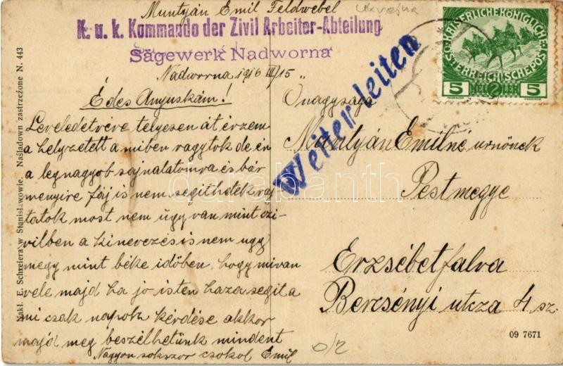 1916 Nadvirna, Nadwirna, Nadwórna; C. k. Sad powiatowy. Nakl. E. Schreier / district court + "K.u.K. Kommando der Zivil Arbeiter-Abteilung Sägewerk Nadworna"