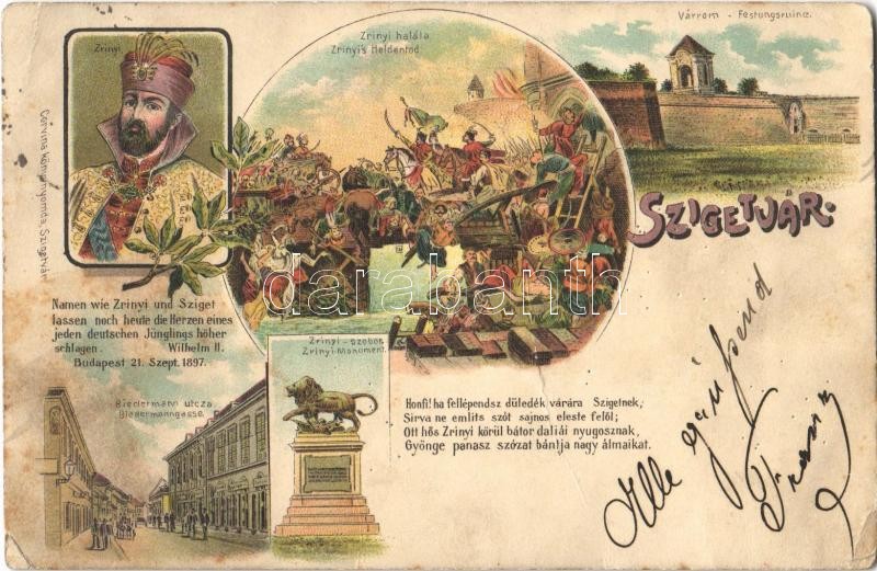 1899 Szigetvár, Várrom, Zrínyi halála és szobra, Biedermann utca; Corv... https://www.darabanth.com/de/365-Fernauktion/365.0/Ansichtskarten/Ungarn~1500004/1899-Szigetvar-Varrom-Zrinyi-halala-es-szobra-Biedermann-utca-Corvin-konyvnyomda-floral-l~II2111550