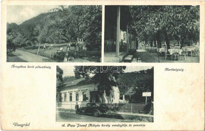 Visegrád, id. Papp József Mátyás király vendéglője és pensioja, árnyék... https://www.darabanth.com/de/365-Fernauktion/365.0/Ansichtskarten/Ungarn~1500004/Visegrad-id-Papp-Jozsef-Matyas-kiraly-vendegloje-es-pensioja-arnyekos-kerti-pihenohely~II2112677