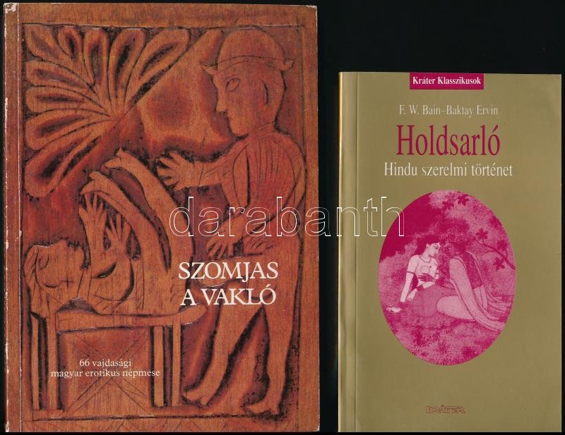 Szomjas vakló. 66 vajdasági magyar erotikus népmese. Szerk.: Burány Béla. Bp., 1988, Képzőművészeti Kiadó. Kiadói papírkötésben, jó állapotban.+F. W. Bain-Baktay Ervin: Holdsarló. Hindu szerelmi történet. Ford. és az előszót írta: Baktay Ervin. Kráter Klasszikusok 3. Pomáz, 2003, Kráter. Kiadói papírkötés.