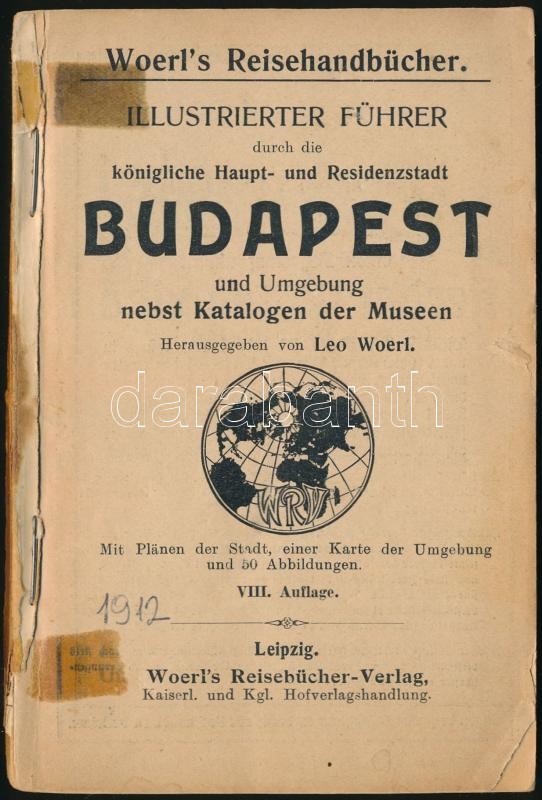 Illustrierter Führer durch die königliche Haupt- und Residenzstadt Budapest und Umgebung nebst Katalogen der Museen. Hrsg.: Leo Woerl. Woerl's Reisehandbücher. Lepzig,(1912), Woerl. VIII. kiadás. Német nyelven. Borító nélküli példány.