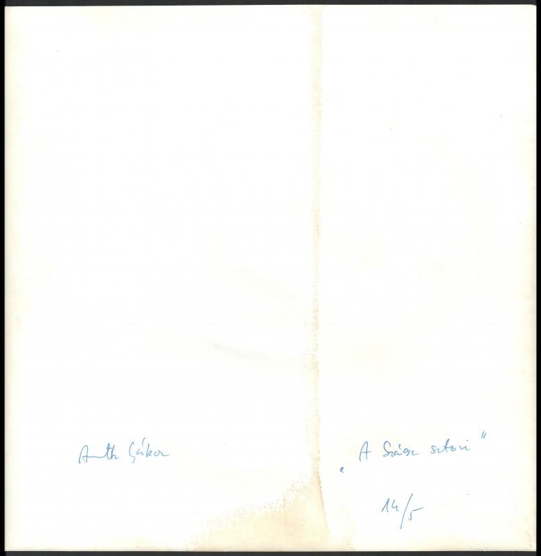 Beschreibung: Armuth Gábor (?-?): "A Szász sztori...": A mester munkái égetés előtt, (Szász Endre (1926-2003)), fotó, a hátoldalán feliratozott, 30x29 cm