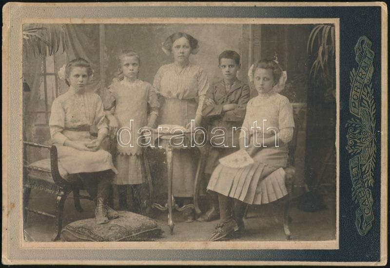 Beschreibung: cca 1900 Család keményhátú fotója, Petruska Ferenc és Társa kispesti műterméből, 12x18 cm