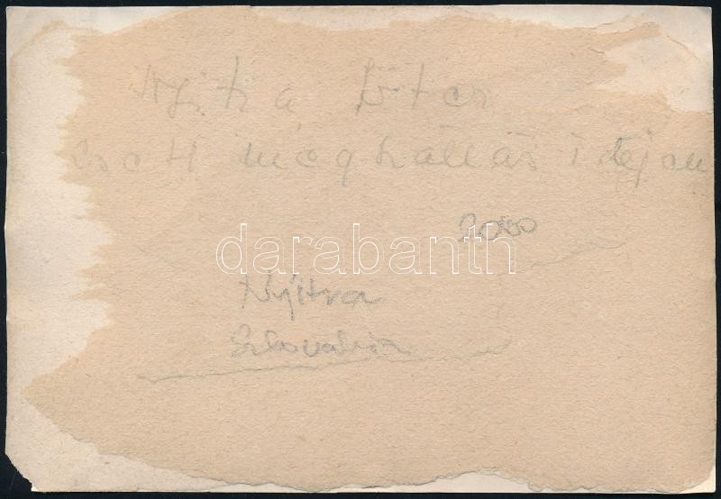 Beschreibung: cca 1918-1919 Nyitra, főtér a cseh megszállás idején, hátoldalon feliratozott fotó, egyik sarka hiányzik, 8×11,5 cm