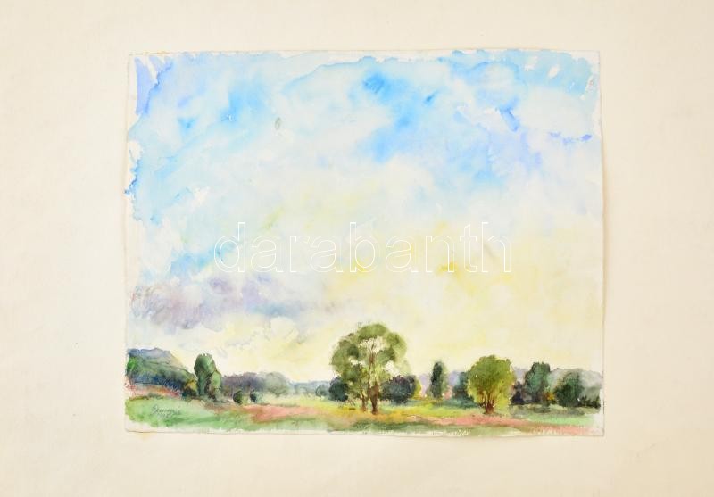 Beschreibung: Ducsay Béla(1893-1967): Alsóörs határa. Akvarell, papír, jelzett, hagyatéki bélyegzővel, 25×31 cm