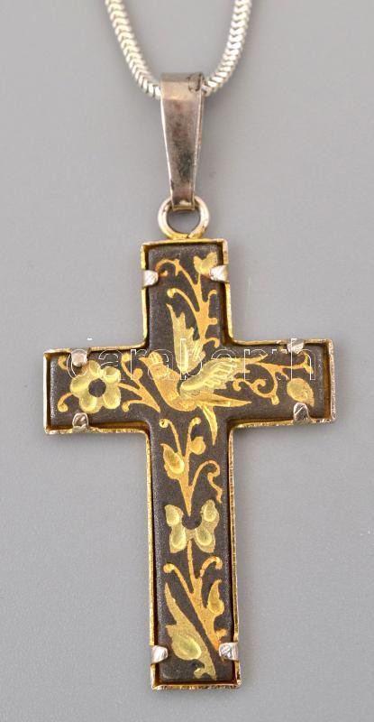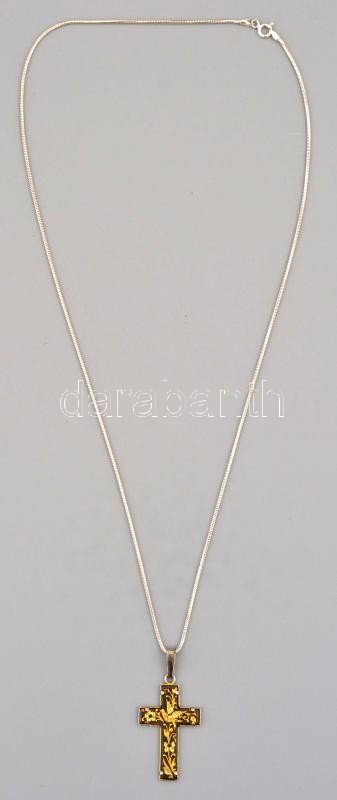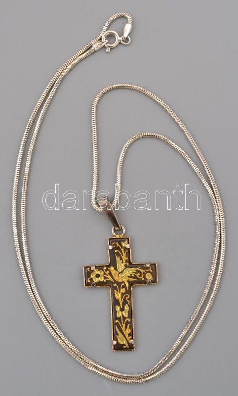 Beschreibung: Ezüst(Ag) kígyó nyaklánc, fém kereszt függővel, jelzett, h: 57 cm, lánc nettó: 3,8 g