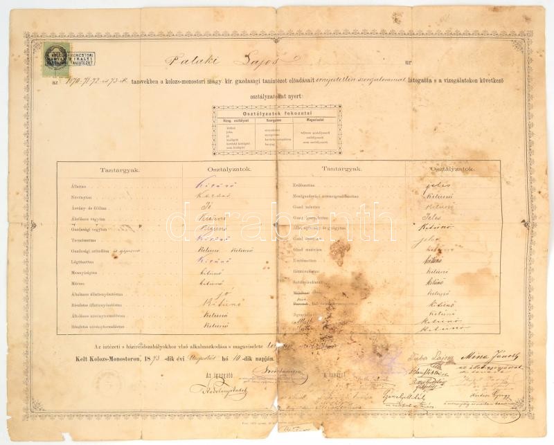1873 Kolozsmonostor, A kolozsmonostori magyar kir. gazdasági tanintéze... https://www.darabanth.com/de/365-Fernauktion/365.0/Kunst-Dokumente-andere-Sammelgebiete/Dokument~500018/1873-Kolozsmonostor-A-kolozsmonostori-magyar-kir-gazdasagi-tanintezet-vegbizonyitvanya~II2087847
