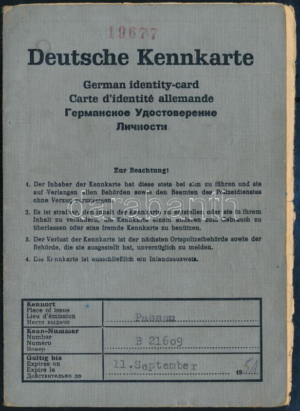 1946-1951 Fényképes német személyigazolvány, magyar nevű személy részé... https://www.darabanth.com/de/365-Fernauktion/365.0/Kunst-Dokumente-andere-Sammelgebiete/Dokument~500018/1946-1951-Fenykepes-nemet-szemelyigazolvany-magyar-nevu-szemely-reszere~II2109505