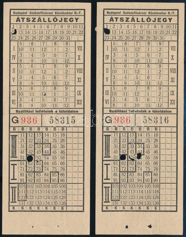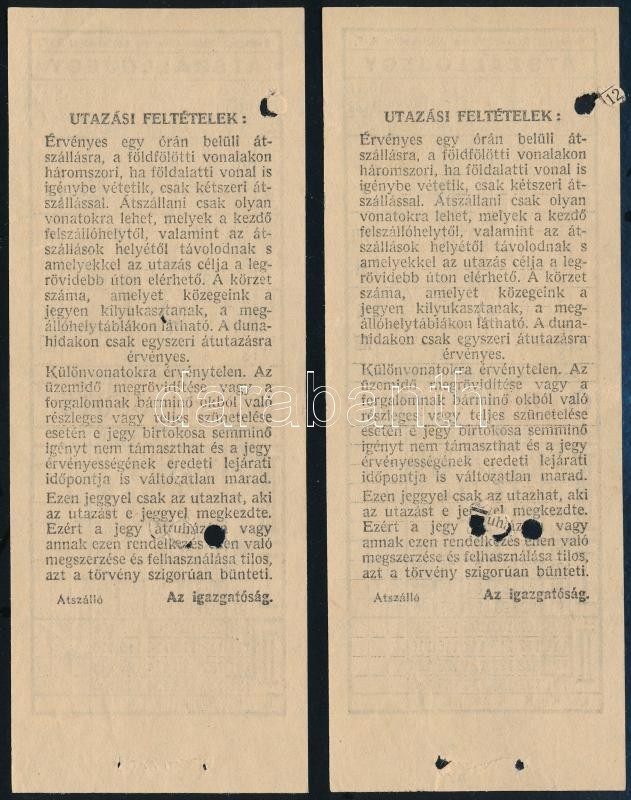 cca 1930-1940 BSzKRT átszállójegy, 2 db sorszámkövető https://www.darabanth.com/de/365-Fernauktion/365.0/Kunst-Dokumente-andere-Sammelgebiete/Dokument~500018/cca-1930-1940-BSzKRT-atszallojegy-2-db-sorszamkoveto~II2114082