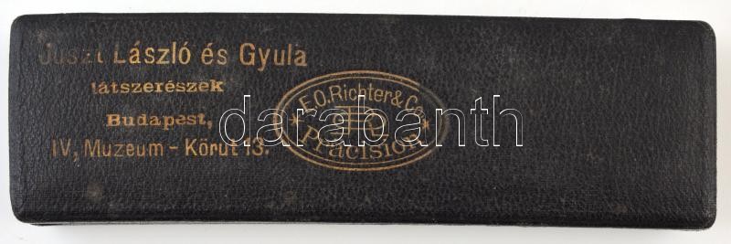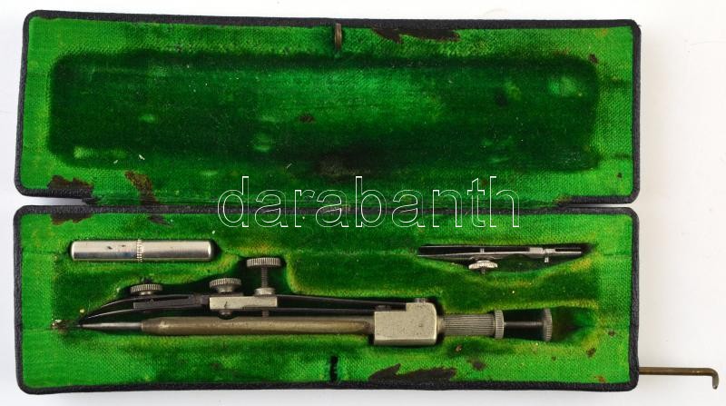 Beschreibung: Régi körző készlet Juszt László és Gyula látszerészek feliratos dobozban