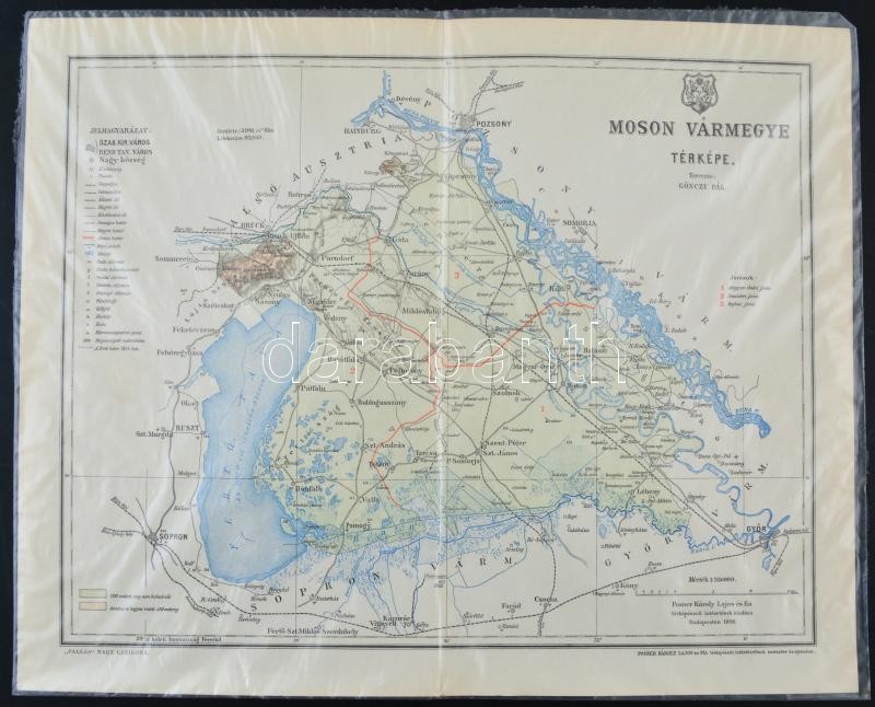 Beschreibung: cca 1910 Gönczy Pál: Moson vármegye térképe 21x27 cm