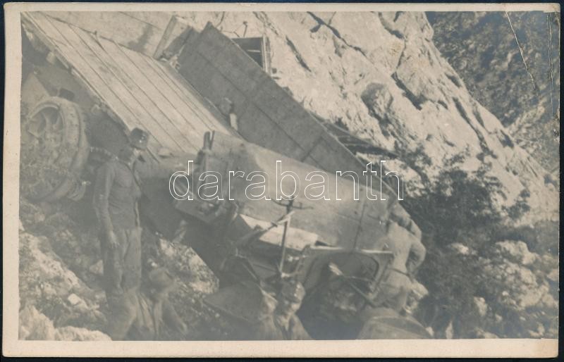 cca 1917 Hegyoldalon megcsúszott és balesetet szenvedett katonai K. u.... https://www.darabanth.com/de/365-Fernauktion/365.0/Kunst-Dokumente-andere-Sammelgebiete/Militaria~500026/cca-1917-Hegyoldalon-megcsuszott-es-balesetet-szenvedett-katonai-K-u-k-teherauto-foto-felu~II2113673