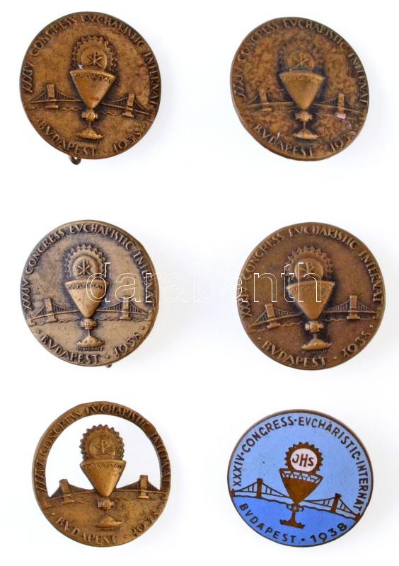 Madarassy Walter (1909-1994) 1938. "XXXIV. Nemzetközi Eucharisztikus Kongresszus Budapest" Br jelvény (5x) egyik zománcozott, a többség hátlapján "TÖRV. VÉD." és "LUDVIG BP" jelzéssel (22mm) T:1-,2