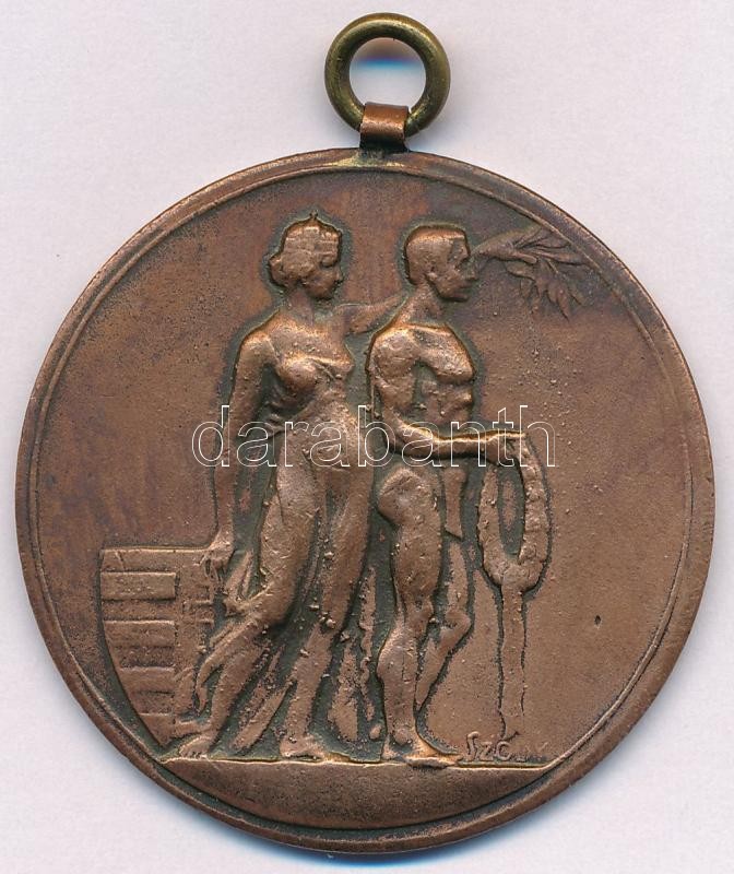 Beschreibung: Sződy Szilárd (1878-1939) DN "Budapest Székesfőváros Versenydíja" bronzozott fém díjérem mellszalag nélkül, füllel (41mm) T:1-,2
