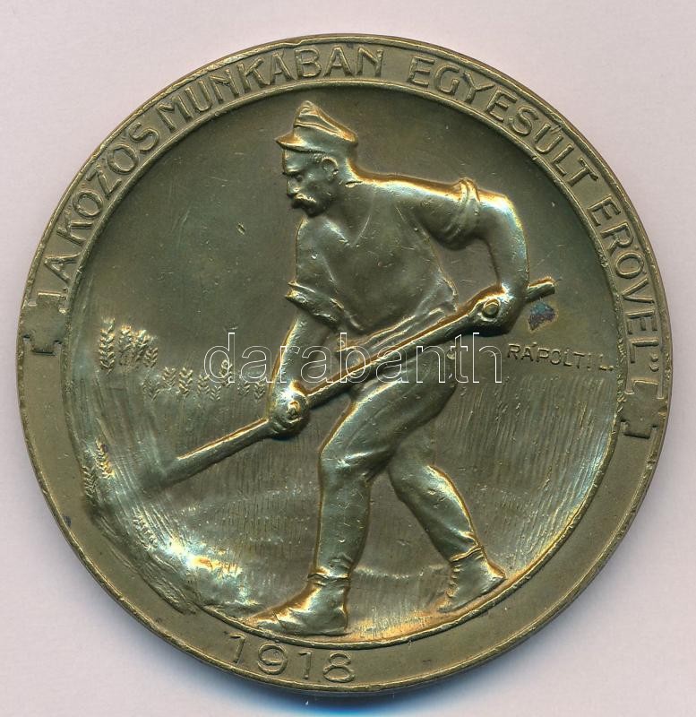 Rápolti Lajos (1880-1954) 1918. "A közös munkában egyesült erővel 1918" egyoldalas Br emlékérem (55mm) T:1- ph.