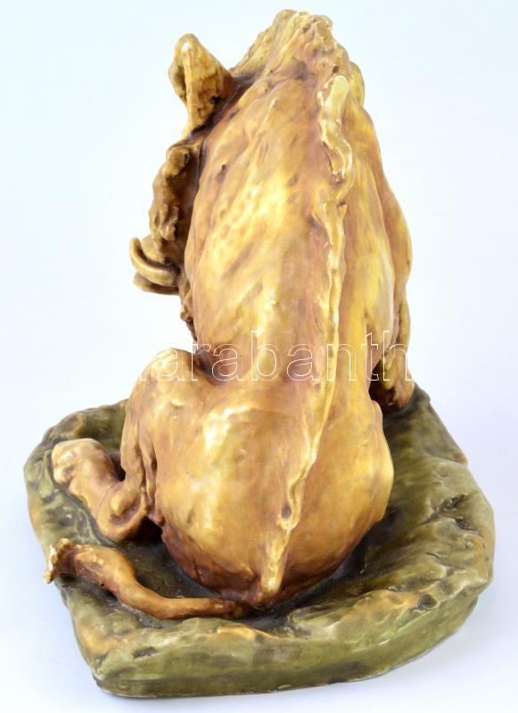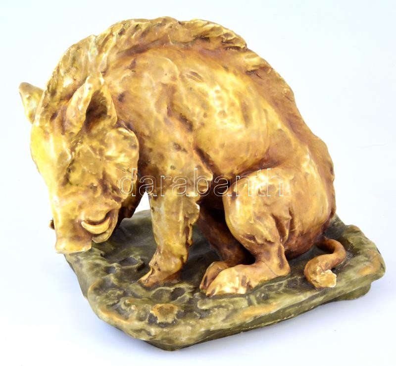 Beschreibung: "Amphora Austria" porcelán vaddisznó, kézzel festett, jelzett, a talapzaton és az egyik lábán törésnyommal, javított, kopásnyomokkal, m: 23 cm