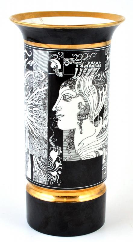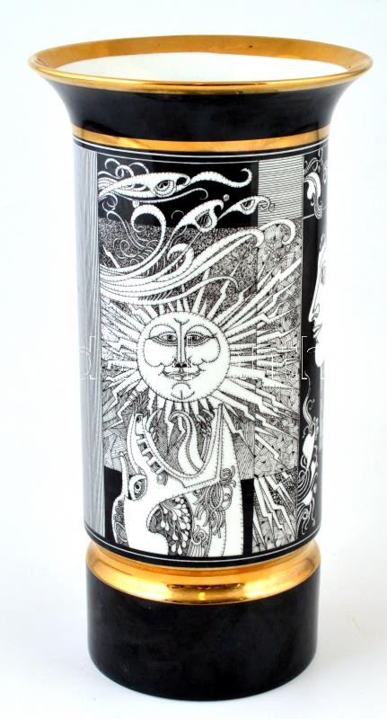 Beschreibung: Hollóházi Szász Endre által tervezett mintával díszített porcelán váza, matricás, jelzett, kis kopásnyomokkal, m: 30 cm